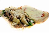 Steak and Feta cheese with Mozzarella Stuffed Calzone.